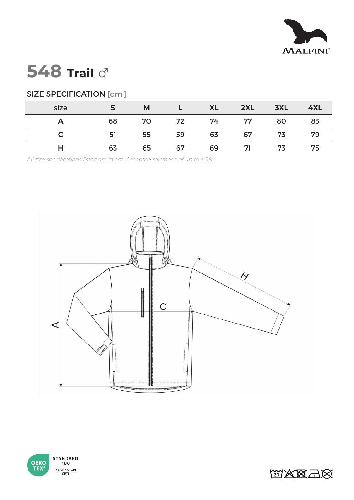 • Ärmelabschlüsse mit Klettverschluss verstellbar