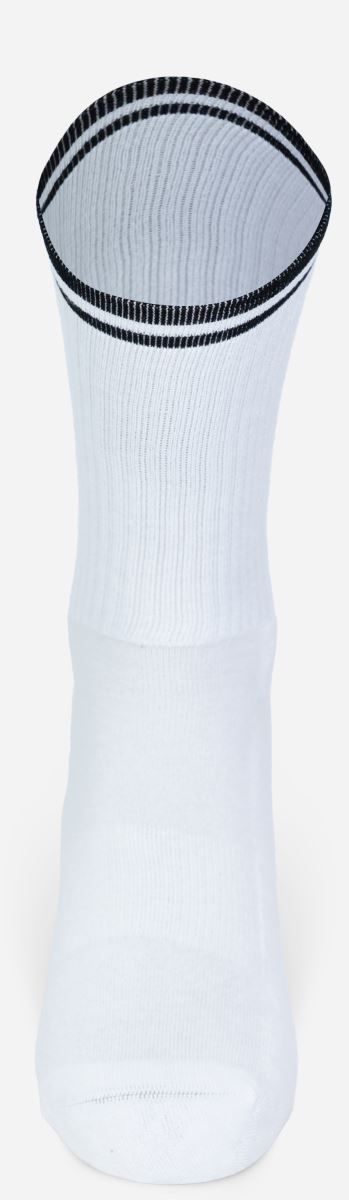 • Prodyšný materiál, Oblast nohou z organické bavlny, žebrovaná holeň z recyklovaného polyesteru, polyamidu a elastanu, pruhy v kontrastní barvě, ideální pro sublimační tisk, vyrobeno v Evropě, kartonová vložka v každé položce pro snadný potisk, pratelné na 30°, lze sušit v sušičce, nelze žehlit