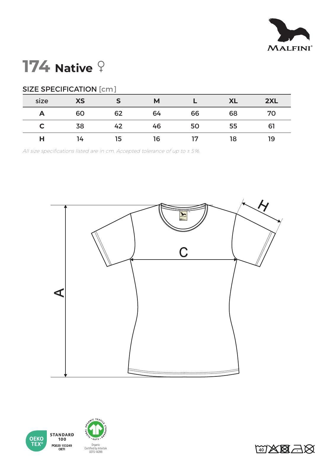Tričko dámské Malfini Native GOTS 174 bílá